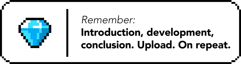 Simple: Introduction, development, conclusion. Upload.